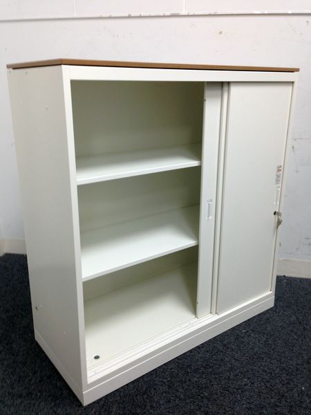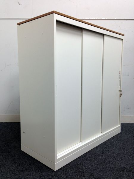 オカムラ製 人気レクトラインシリーズ ホワイト シリンダー W800xD450XH1050 3枚引戸 ※ベースなし 3枚引き違い書庫!!