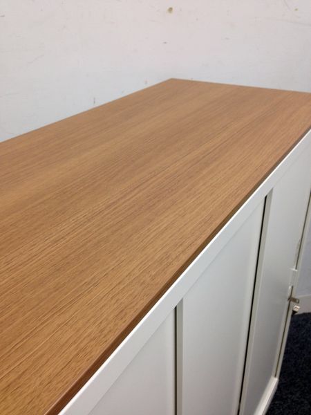 【レア】オカムラ製 レクトライン ホワイト シリンダー W800xD450xH1100 W800サイズ 3枚引戸 3枚引き違い書庫!!