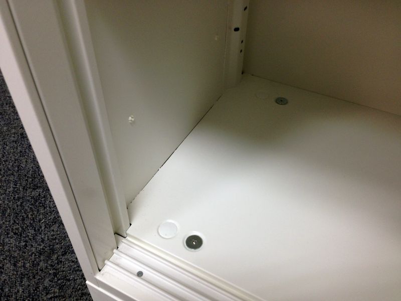 - 一部不具合ありそ引出の開閉不可、施錠不可、棚板無しといったの書庫の本来の効用を果たすための機能以外の一部が使用不可(例、扉、引出の開閉がしづらいなどがある。 )