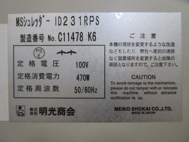 【中古】 MS-ID231RPS 明光商会 シュレッダー 209622