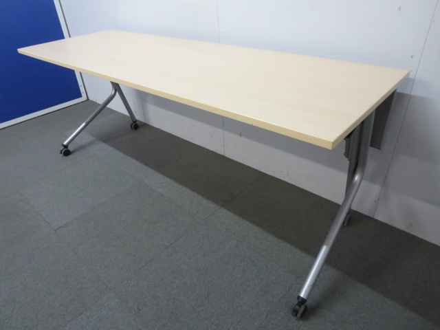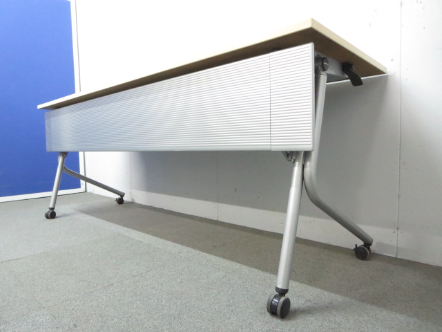 【定価約8万円】【天板ナチュラルカラーの人気サイドスタックテーブル!2~3人使用に最適!】■オカムラ(okamura)製 ネスティア(NESTIA)シリーズ サイドスタックテーブル フラップタイプ W1800×D600㎜ ■幕板付 ■木目ナチュラル
