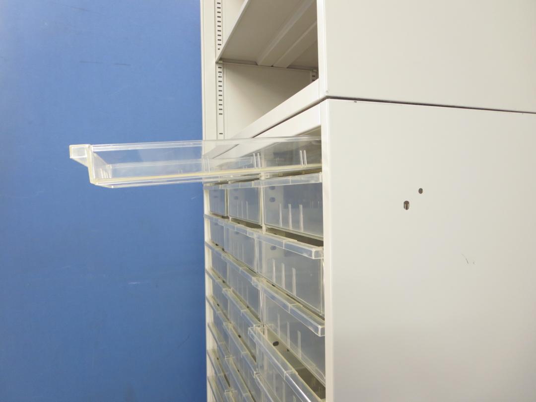 - 多数不具合あり引出の開閉不可、施錠不可、棚板無しといったその書庫の本来の効用を果たすための機能以外の多数が使用不可(例、扉、引出の開閉がしづらいなどがある。 )