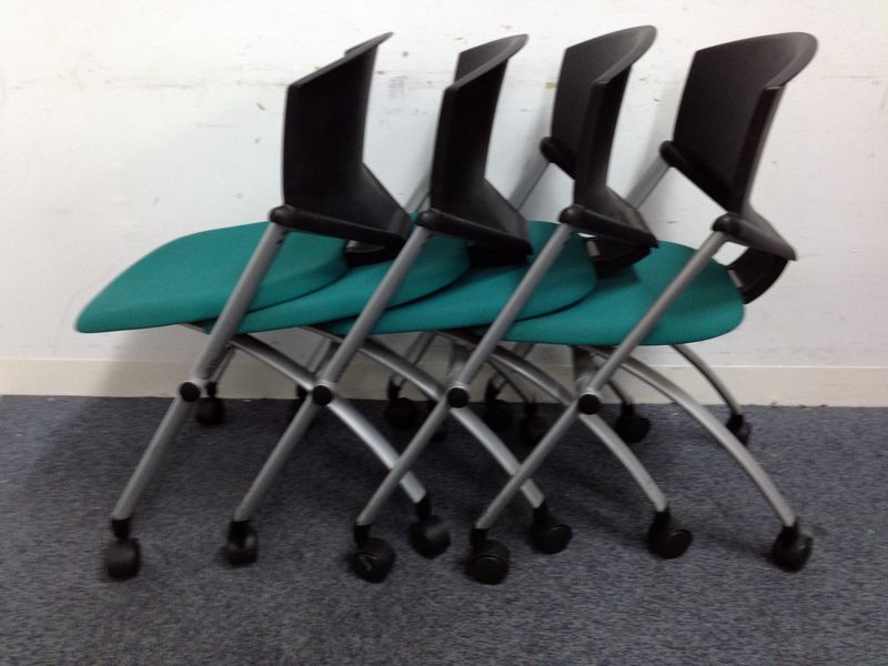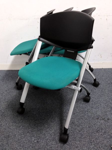 【大量22脚入荷】横収納可能なネスティングチェアまとめて入荷!!安心のコクヨ製【コルサ】グリーン×ブラックでおしゃれに演出!!- 名古屋千種店