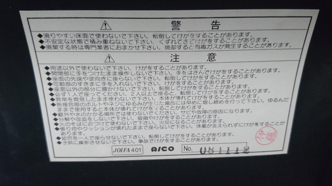 - 一部不具合ありそのチェアの本来の効用を果たすための機能以外の数か所が使用不可の状態にある。(例:背もたれロック不良と奥座調整等の内数カ所)