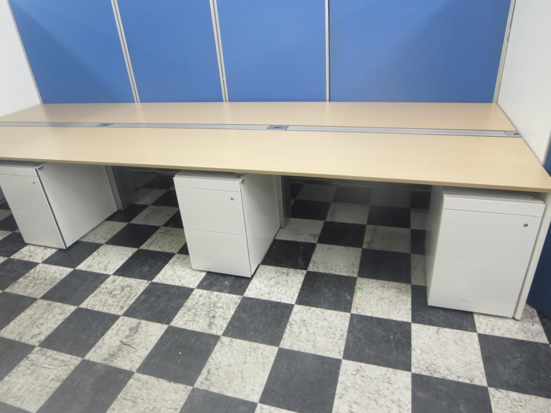 【¥138,000→¥124,200(10%OFF)】【フリーアドレスデスクとフリアド用ワゴン】イトーキのインターリンク!幅1400mmの天板×6枚 ワゴンはイトーキ製 インクルード 脚のカラーと合わせて見栄えよく!【天板カラー:ナチュラル】【6名様用】【中古オフィス家具】【さいたま市】- 埼玉本店