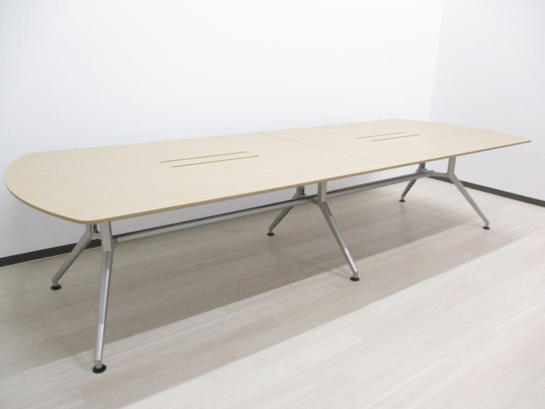 【会議室だけでなく休憩室でも!6~8名様対応・大型テーブル】■イトーキ(ITOKI) DDDシリーズ ミーティングテーブル 会議テーブル 幅2400×奥行900mm ■木目ナチュラル天板 脚シルバー色 オフィスバスターズ東大阪店