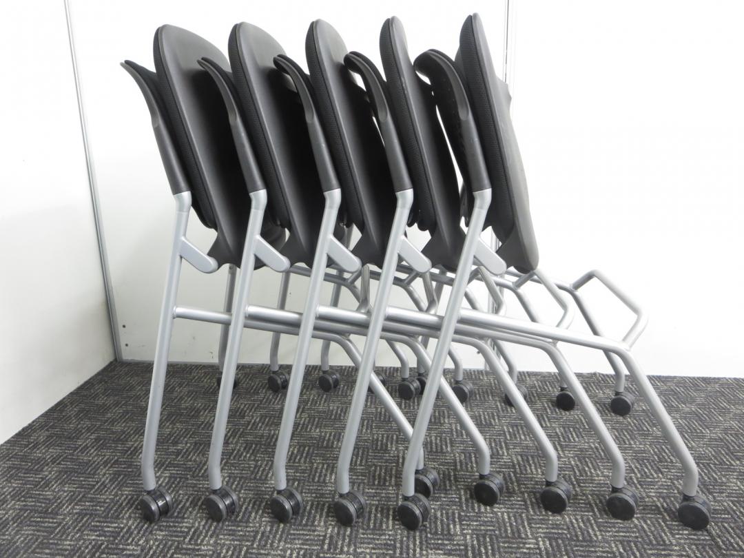 【5脚入荷!】オカムラの定番ネスティングチェア!ブラックの色味で落ち着いた雰囲気にも合います【中古オフィス家具】- 埼玉本店