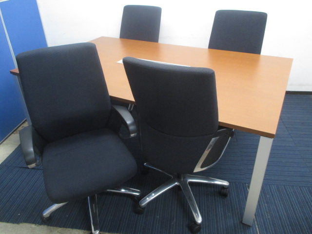 【クリック1つで全て揃うセット】ミーティングセット(4名用) ■エグゼクティブ用チェアとのセットなので高級志向の役員様に!【セット品】【中央区】【日本橋】【中古オフィス家具】- 日本橋店