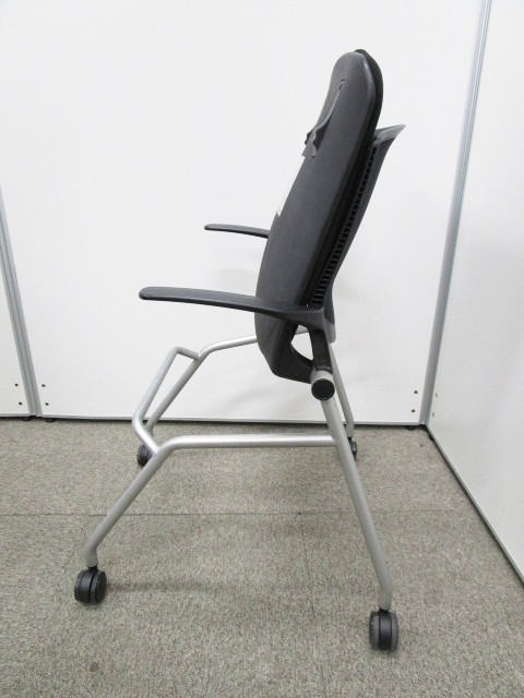 ★平行スタック機能可能★人気のブラックメッシュタイプ★国内メーカーokamura(岡村製作所)製★/オシャレ/コンパクト/会議用/メッシュ/肘付き- 池袋店
