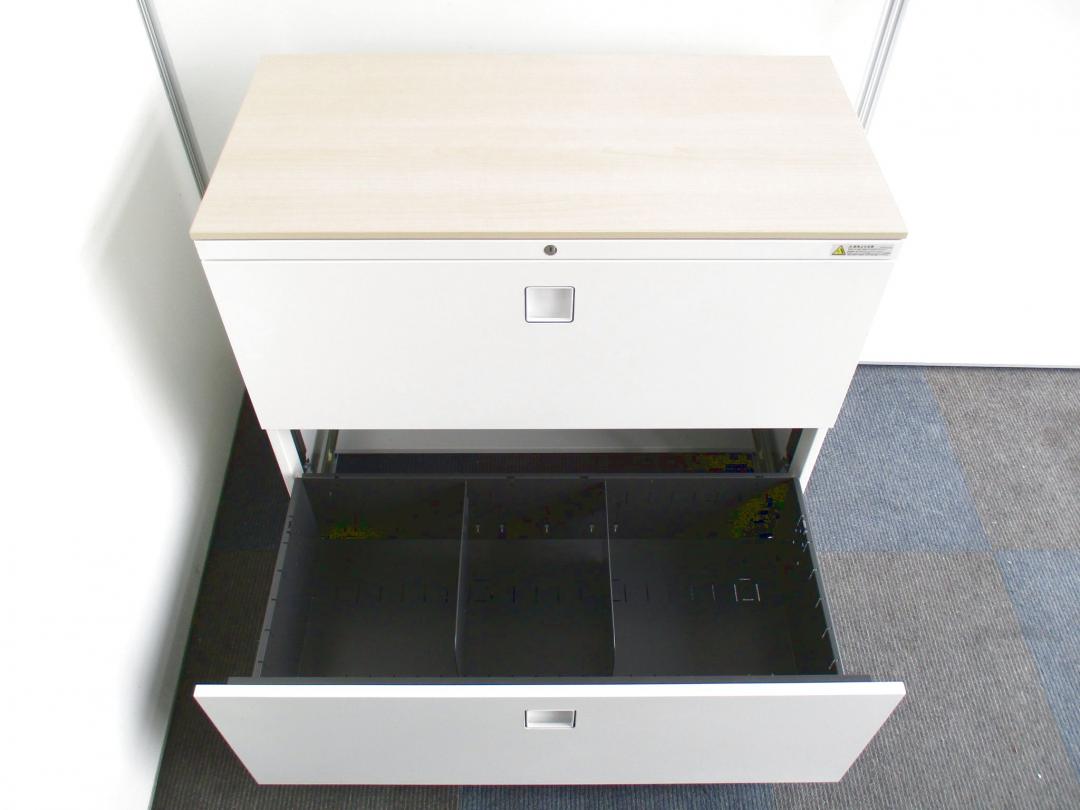 オカムラ(okamura) レクトライン2段ラテラル書庫 ナチュラル色の天板