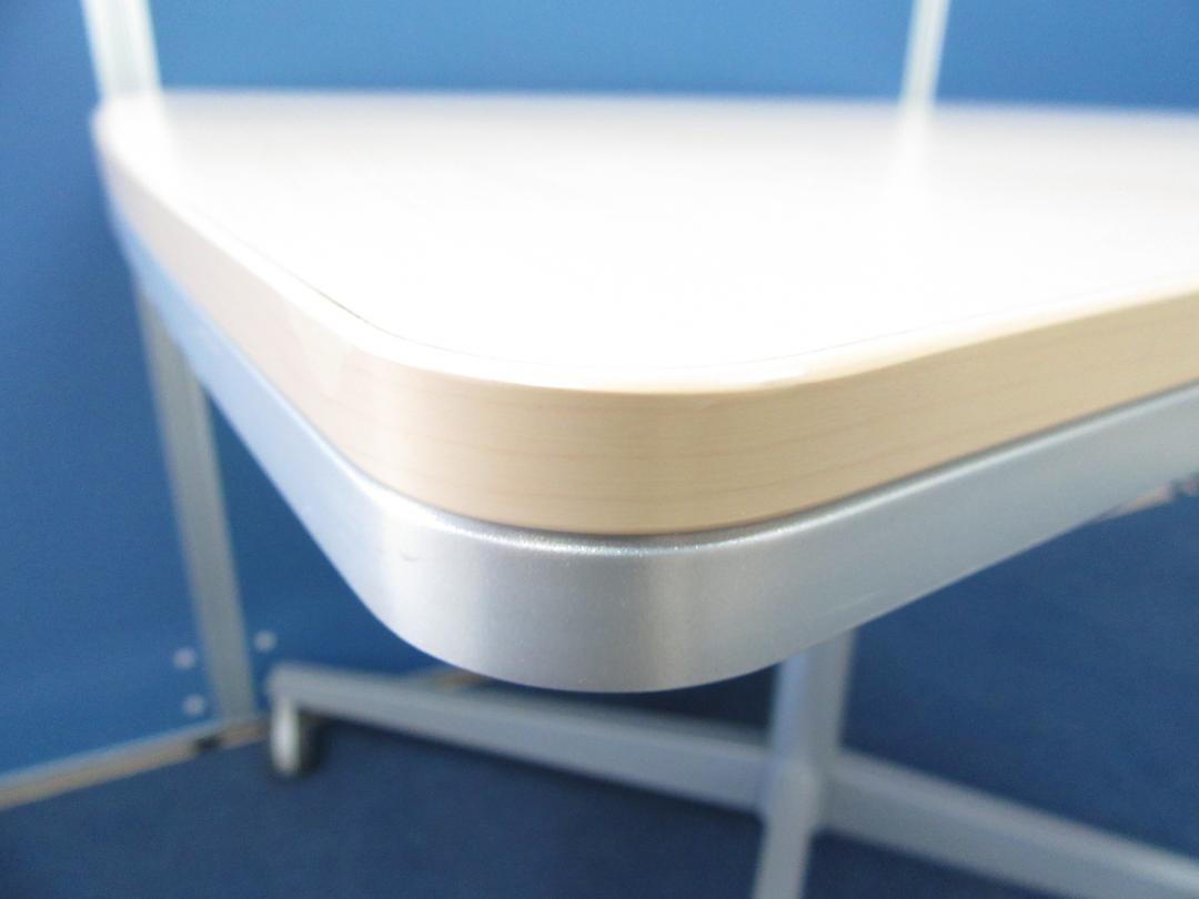 - 一部不具合あり天板歪み、アジャスター無し、キャスター使用不可ようなそのテーブルの本来の効用を果たすための機能以外の一部が使用不可な状態。(例、キャスターロッ ク機能使用不可、棚板無し等がある。)