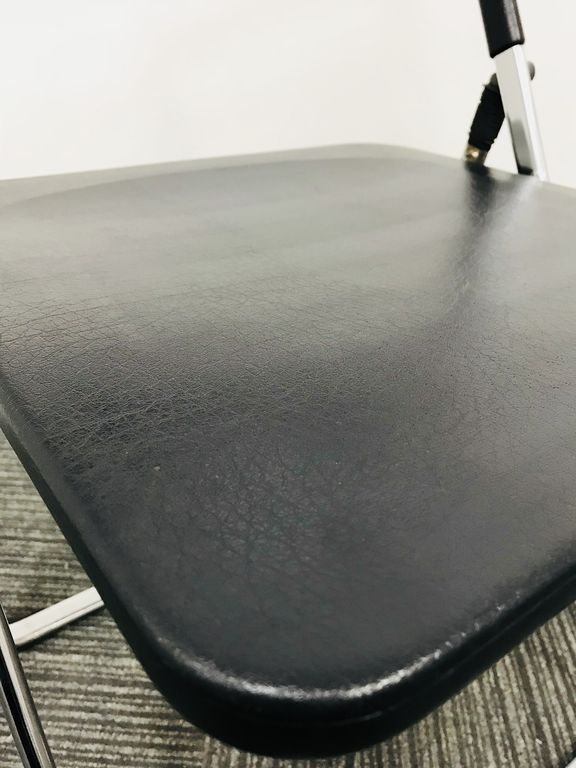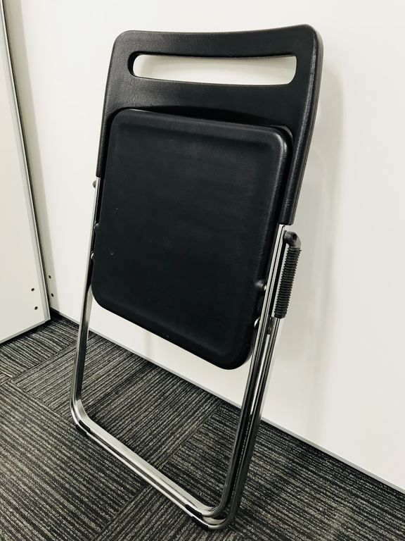 【折りたたみチェア】■ブラック■革張り■どことなく高級感あります- 春日部・越谷店