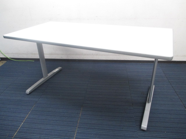 【4名様用】足元すっきりT字足のテーブル ■人気のホワイトカラー ■2台揃います【中央区】【日本橋】【中古オフィス家具】- 日本橋店