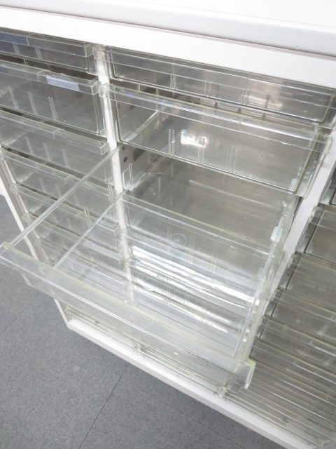 - 多数不具合あり引出の開閉不可、施錠不可、棚板無しといったその書庫の本来の効用を果たすための機能以外の多数が使用不可(例、扉、引出の開閉がしづらいなどがある。 )