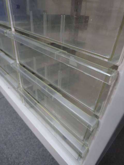 - 一部不具合ありそ引出の開閉不可、施錠不可、棚板無しといったの書庫の本来の効用を果たすための機能以外の一部が使用不可(例、扉、引出の開閉がしづらいなどがある。 )