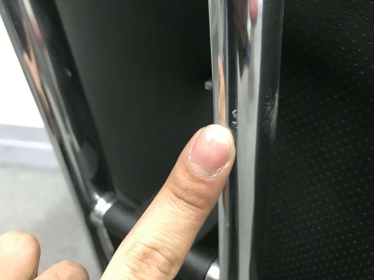 - 目立つ箇所あり傷・破れ・ほつれ・へたり・しわが多数または深い傷・破れ・ほつれ・へたり・しわが一部ある。※座面・背もたれ、シェル、脚部等にある。