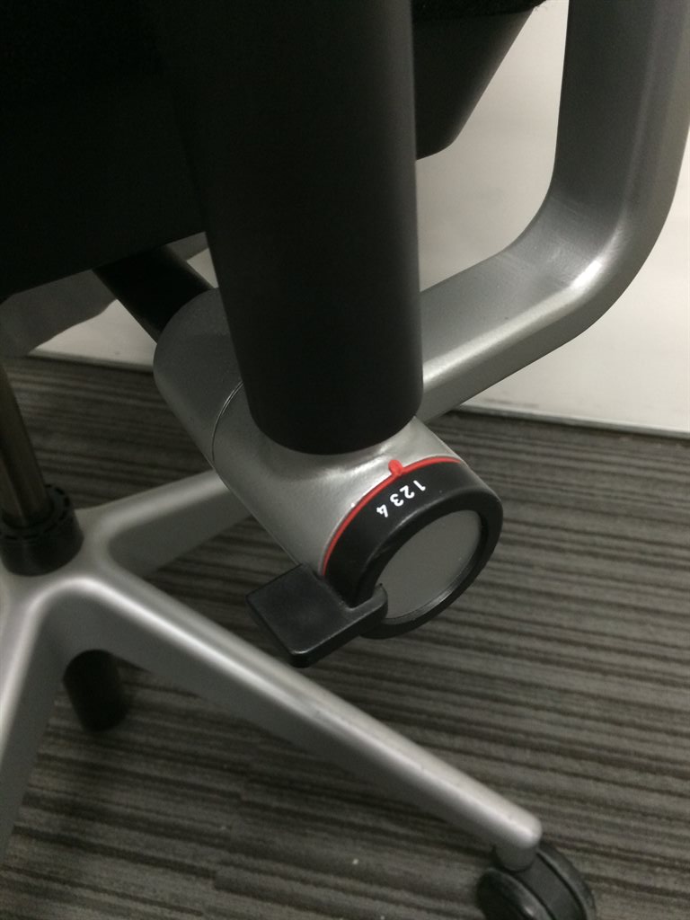 リクライニングの強弱調整レバーにはメモリが付いており、
