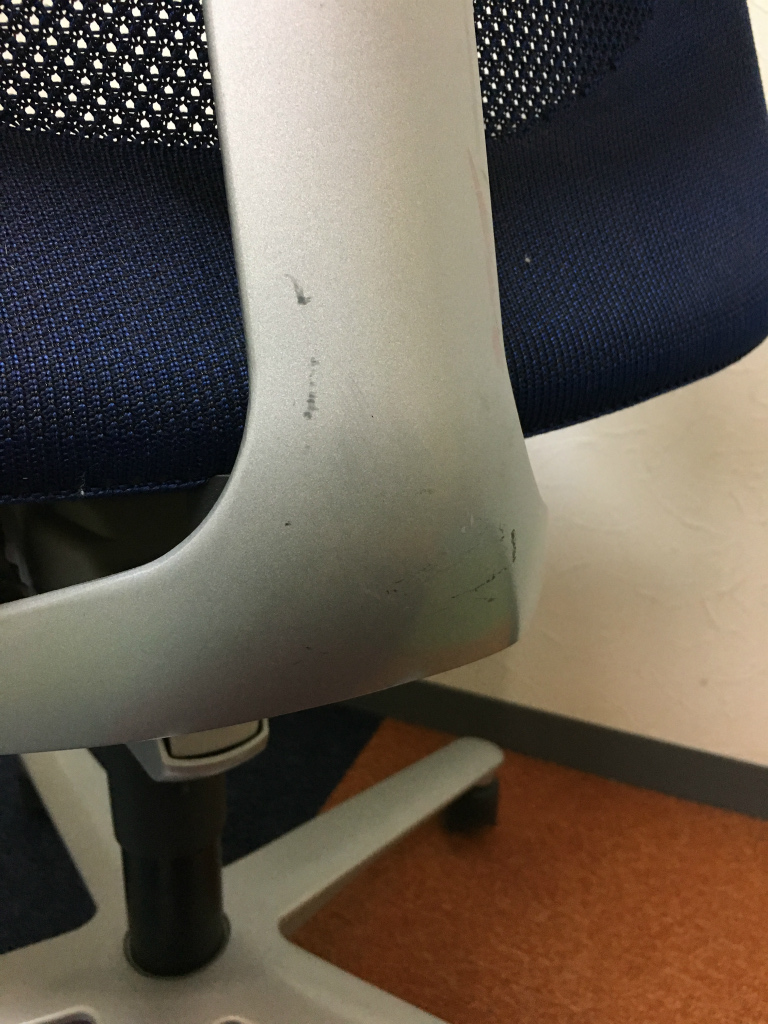 - 目立つ箇所あり傷・破れ・ほつれ・へたり・しわが多数または深い傷・破れ・ほつれ・へたり・しわが一部ある。※座面・背もたれ、シェル、脚部等にある。