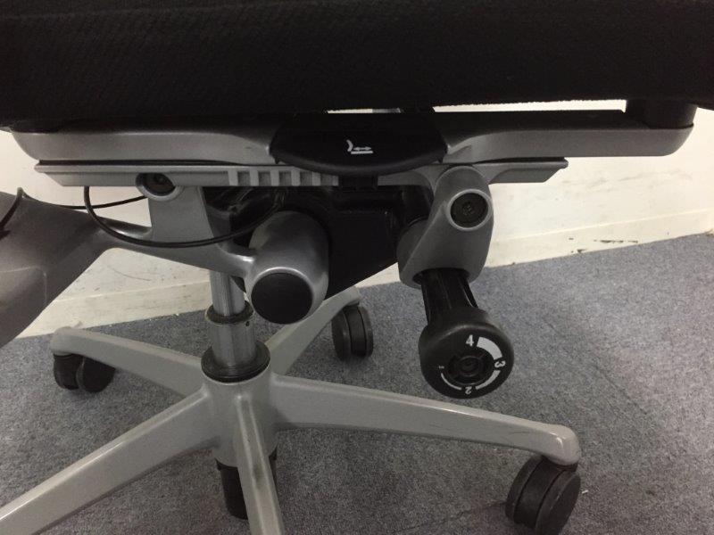 - ロッキングの強弱を調整するダイヤルがございます。体型に合わせてリクライニングの固さを座ったままで調整できます。