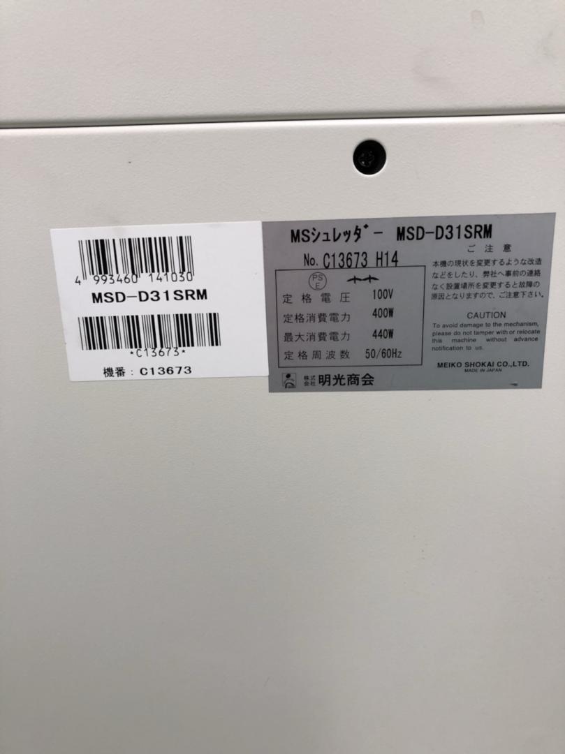 【中古】 MSD-D31SRM 明光商会 シュレッダー 211660