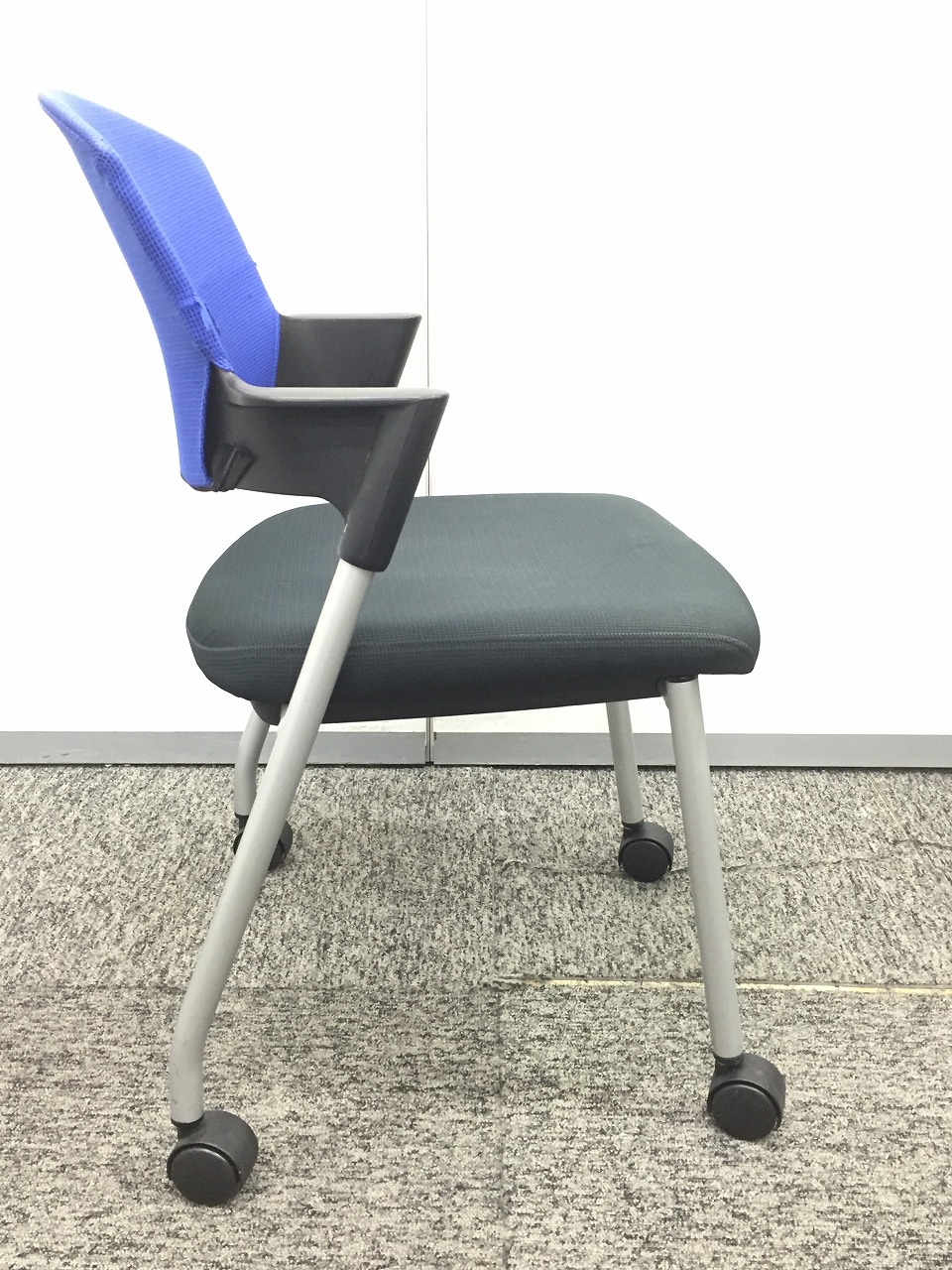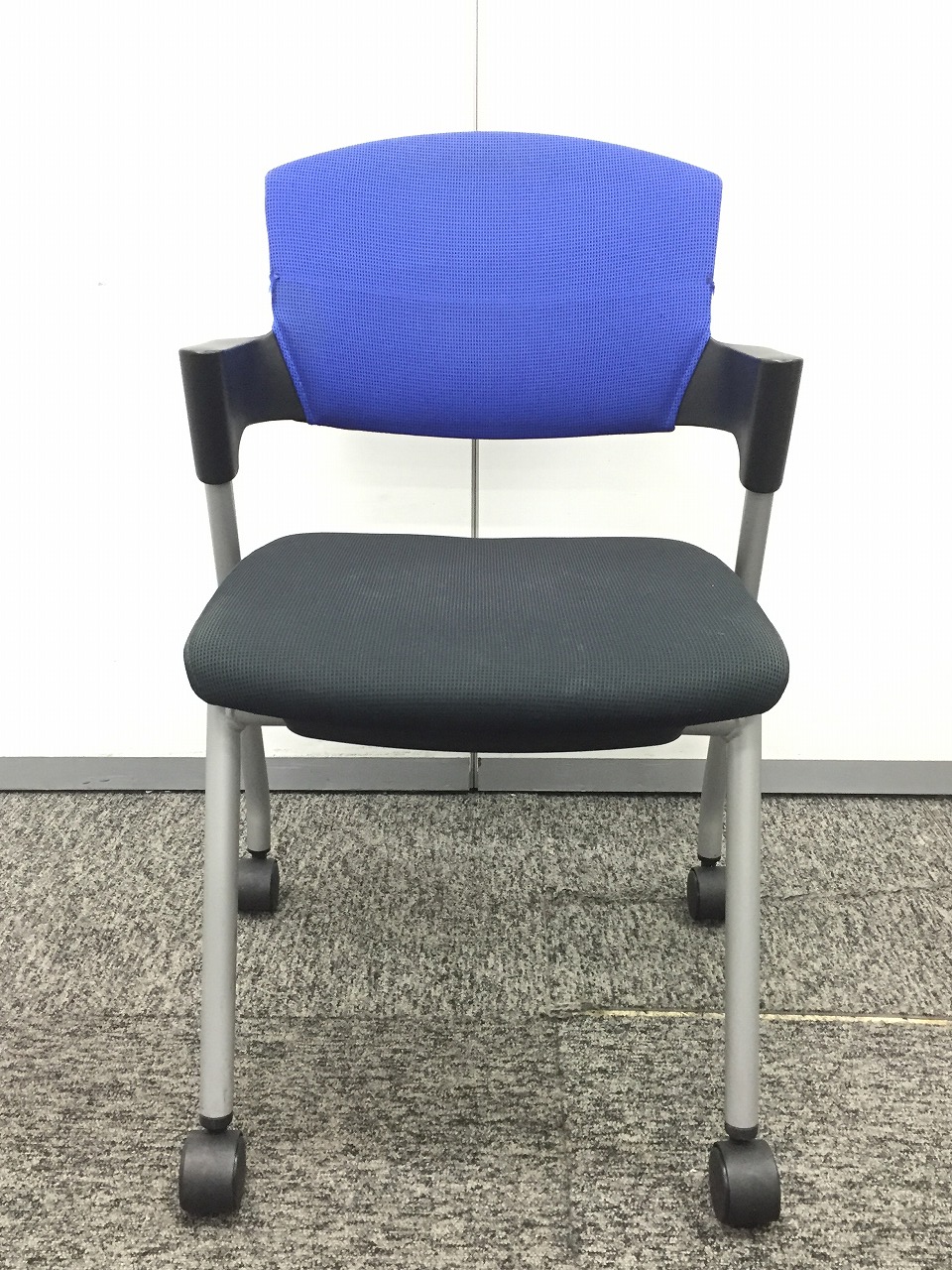【シンプルスマートなスタッキングチェア!分厚いクッションで長時間でも快適な座り心地!】■コクヨ(KOKUYO)製 プロッティ (Protty) 肘付 ミーテイングチェア スタッキングチェア ■固定肘 ■ブルー×ブラック ■背面ヌードタイプ