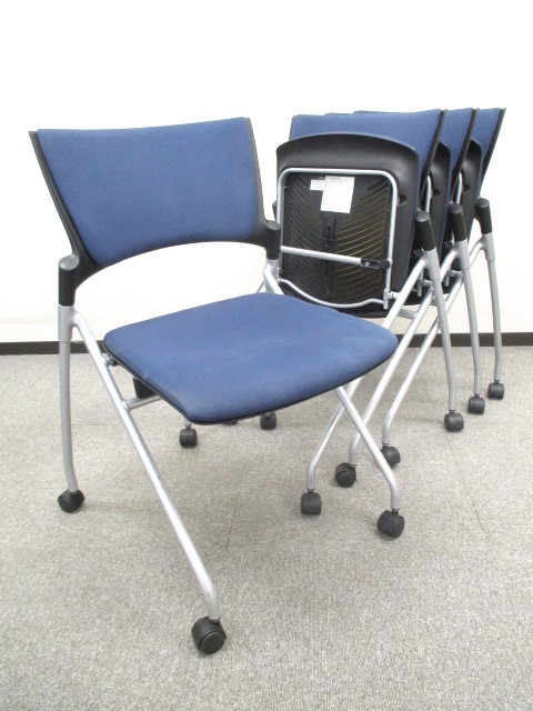 【人気のネスティングタイプ】イトーキ製ネスティングチェア■落ち着いたネイビーブルーカラー■収納楽なネスティングタイプ【中央区】【日本橋】【中古オフィス家具】- 日本橋店