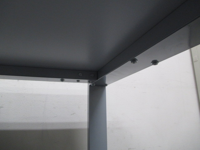 - 目立つ箇所複数あり深い傷・凹みが商品全体にある。(例、天板、幕板、棚板、サイド部分、脚部等にある。)