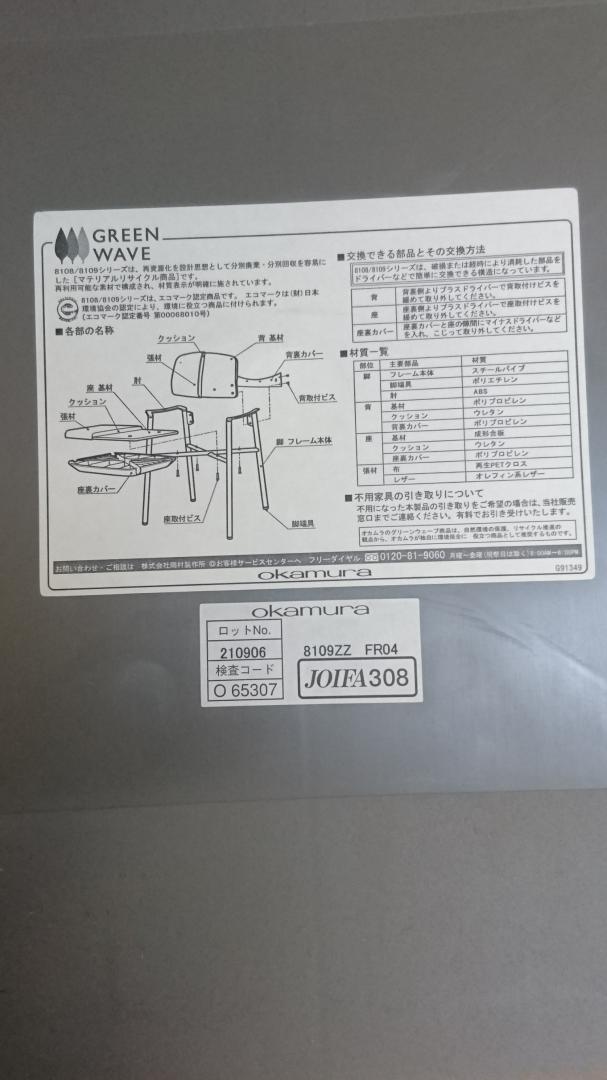 【中古】 8109ZZ オカムラ/okamura スタッキングチェア 212317