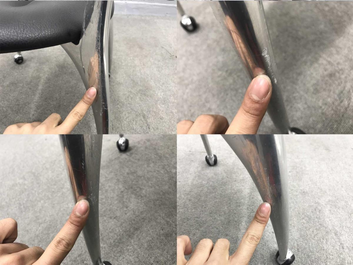 - 目立つ箇所あり傷・破れ・ほつれ・へたり・しわが多数または深い傷・破れ・ほつれ・へたり・しわが一部ある。※座面・背もたれ、シェル、脚部等にある。