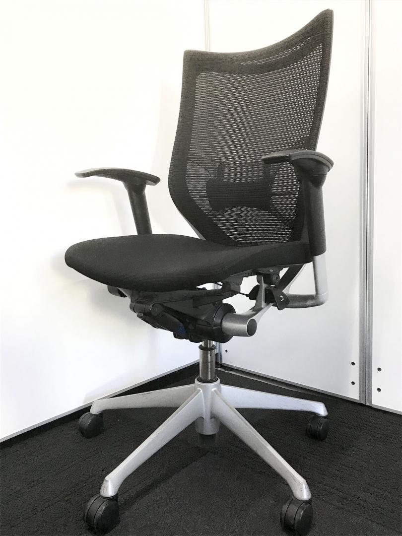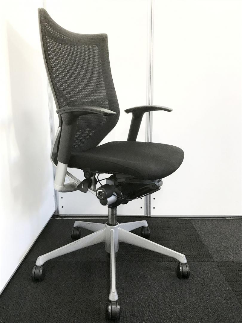 【長時間の着座でも疲れにくい!ベストなポジションが得られる先進設計!】■オカムラ バロンチェア 肘付 ブラック ハイバック シルバーフレーム ■良い椅子は腰を守る投資です!【Okamura Baron】