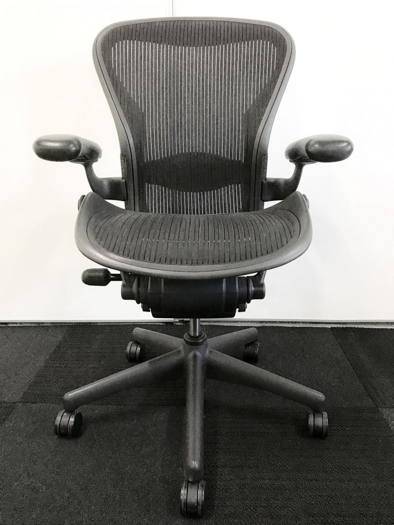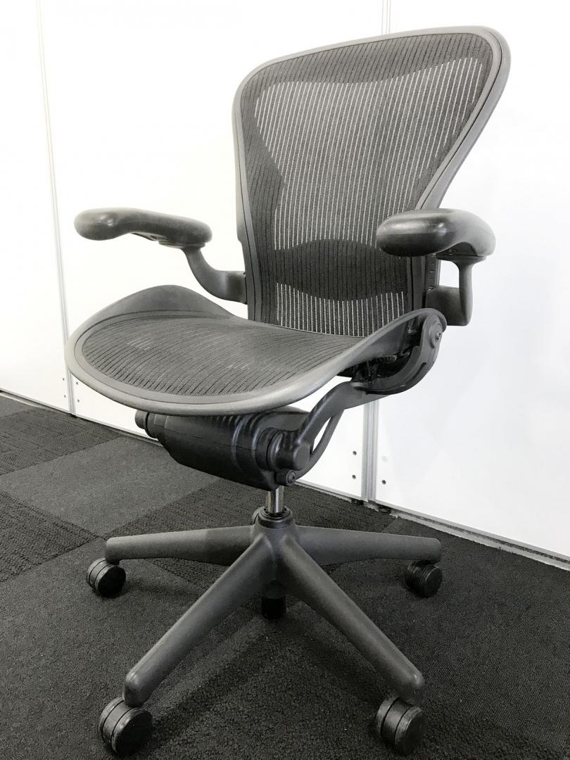 【★状態イマイチのためお安く!】■ハーマンミラー製 アーロンチェア Bサイズ 固定肘 ※キズあり・ランバーサポート無・昇降ガス圧弱めのためお安く!【訳あり特価品】