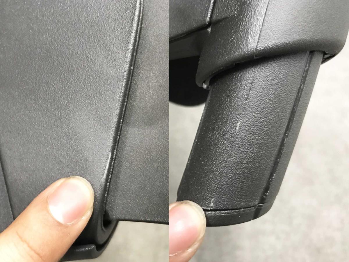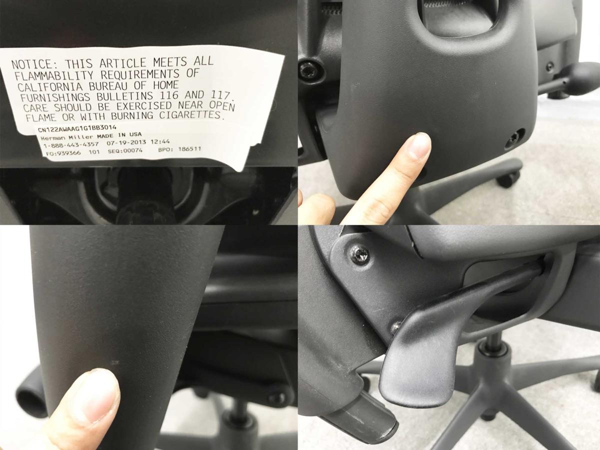 - 目立つ箇所あり傷・破れ・ほつれ・へたり・しわが多数または深い傷・破れ・ほつれ・へたり・しわが一部ある。※座面・背もたれ、シェル、脚部等にある。
