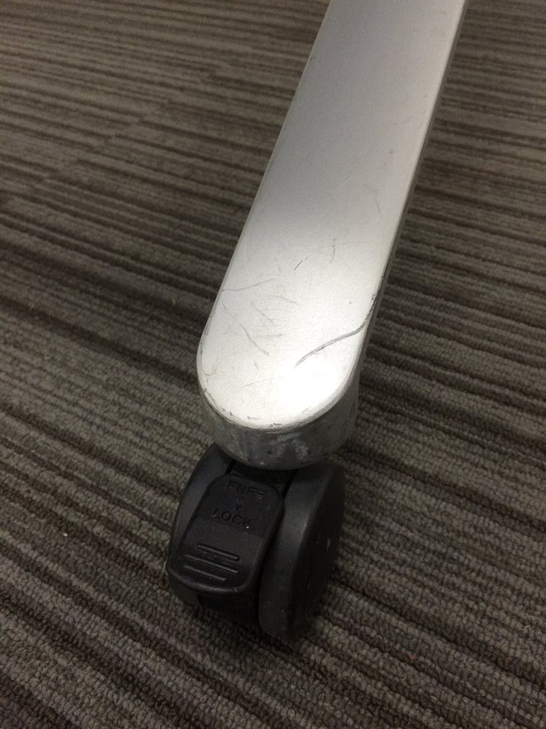 - 一部不具合あり天板歪み、アジャスター無し、キャスター使用不可ようなそのテーブルの本来の効用を果たすための機能以外の一部が使用不可な状態。(例、キャスターロッ ク機能使用不可、棚板無し等がある。)