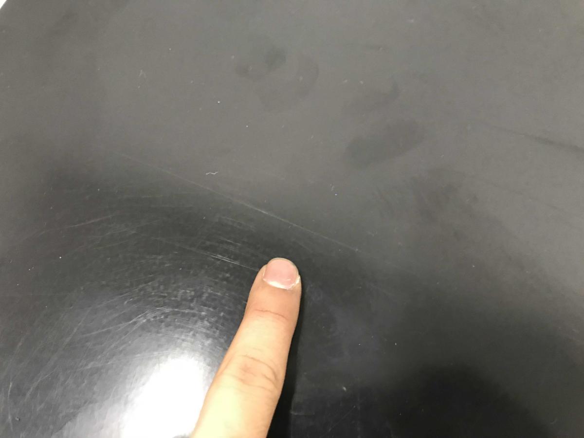 - 目立つ箇所あり傷・凹みが多数、深い傷・凹みが一部ある。(例、天板、正面、背部、サイド部分にある。)