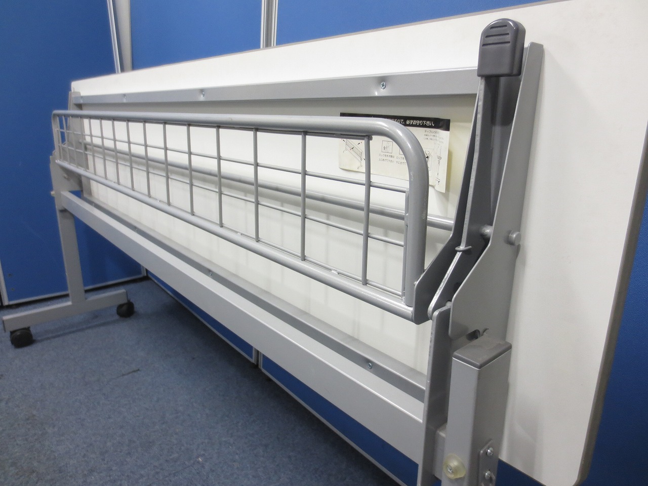 - 一部不具合あり天板歪み、アジャスター無し、キャスター使用不可ようなそのテーブルの本来の効用を果たすための機能以外の一部が使用不可な状態。(例、キャスターロッ ク機能使用不可、棚板無し等がある。)