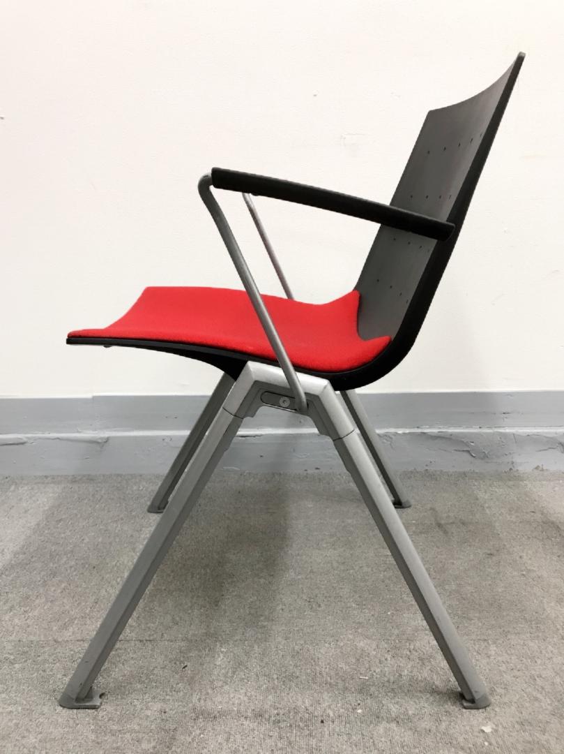 [倉庫在庫]【4脚入荷‼】内田洋行(UCHIDA)製 MX-250スタッキングチェア 肘付き■低価格でデザイン性のあるチェア‼会議用の差し色に‼赤でやる気もUP‼- つくば店