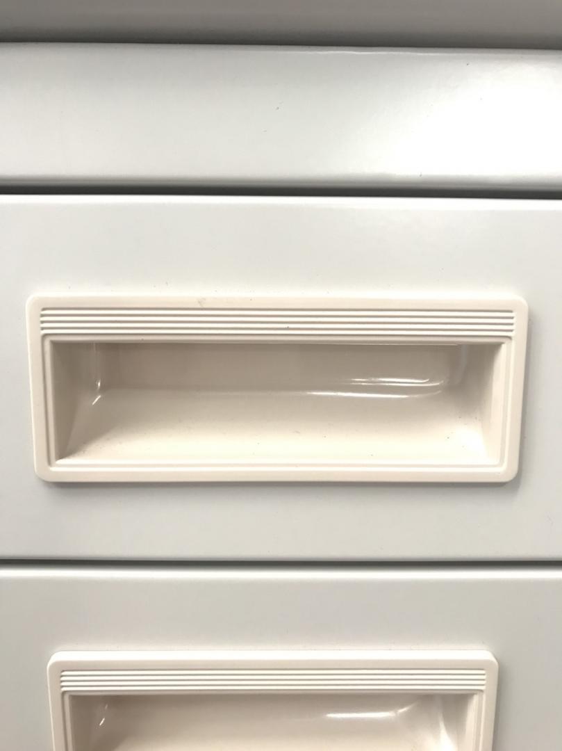 - かなり強い濃い黄ばみ・変色が商品全体にある。(例、天板、正面、背後、サイド部分にある。)