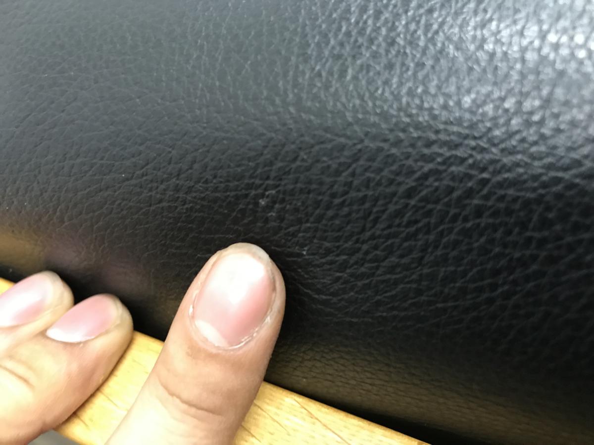 - あり黄ばみ・変色が広い範囲にうっすらある、または濃い黄ばみ・変色が一部ある。(例:三人用ソファ、二人用ソファ、一人用ソファの場合、背もたれ、肘かけ、座面等、 センターテーブルの場合、天板、脚にある。)