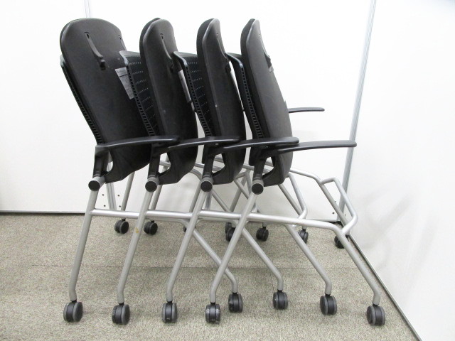 【倉庫内在庫品】【鉄板オシャレ商品】オカムラ製グラータチェア|ネスティングタイプ|人気のブラック|会議室、リフレッシュスペースに!【池袋店在庫品】- 立川・八王子店