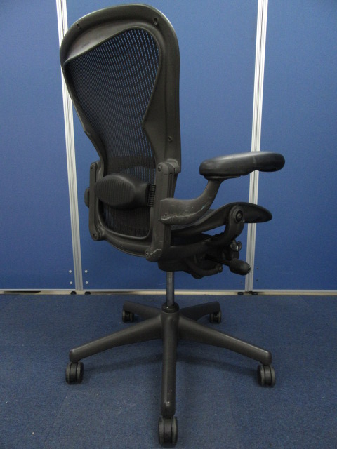 【★状態イマイチのためお安く!】■ハーマンミラー製 アーロンチェア Bサイズ 固定肘 ※キズあり・ランバーサポート無・昇降ガス圧弱めのためお安く!【訳あり特価品】