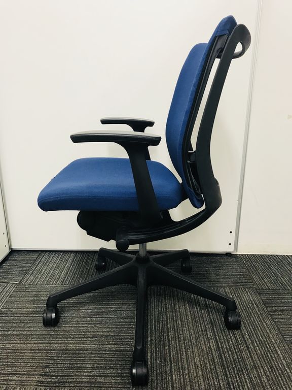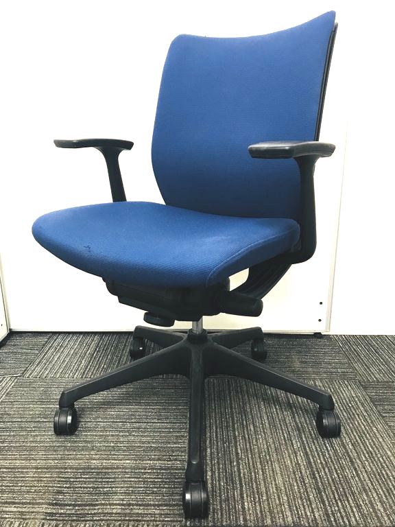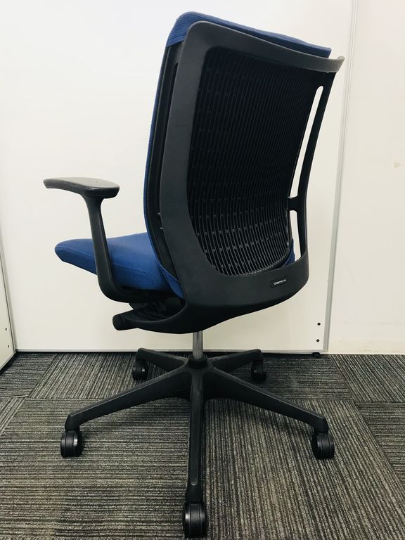 オカムラ ヴィスコンテ ローバックモデル アジャストアーム(可動肘)ブルー 背クッション スタンダードタイプ