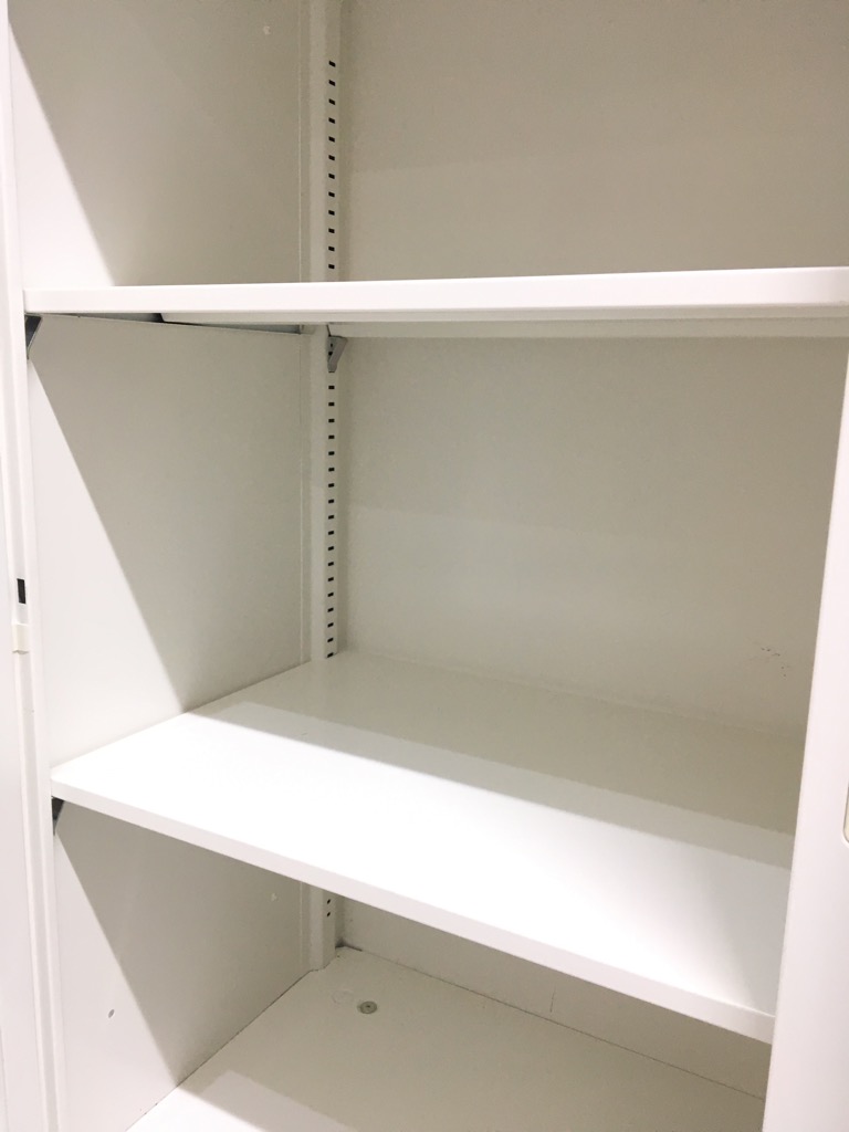 カウンターとしてもおすすめ!使い勝手抜群の天板付き2枚引き違い書庫が入荷! ■オカムラ/レクトライン/ホワイト 2枚引き戸 ホワイト天板付き
