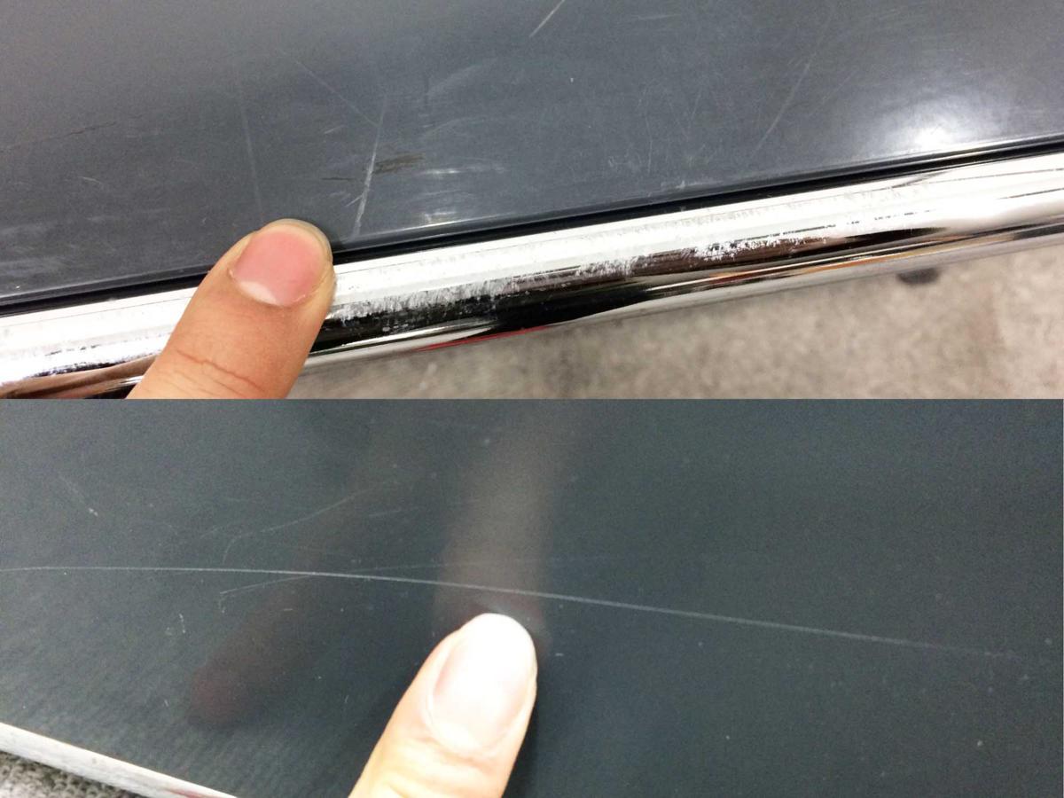 - あり黄ばみ・変色が広い範囲にうっすらある、または濃い黄ばみ・変色が一部ある。(例、天板、正面、背部、サイド部分にある。)