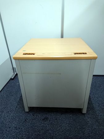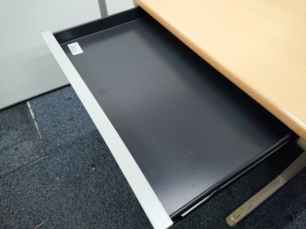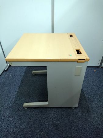 - 袖机のワゴンは、最下段がロング引出しになっており、従来より収納力120%アップ。