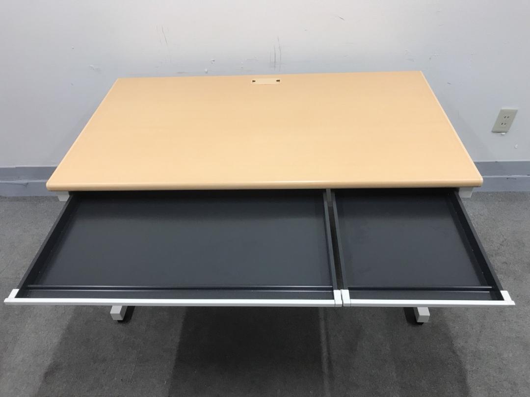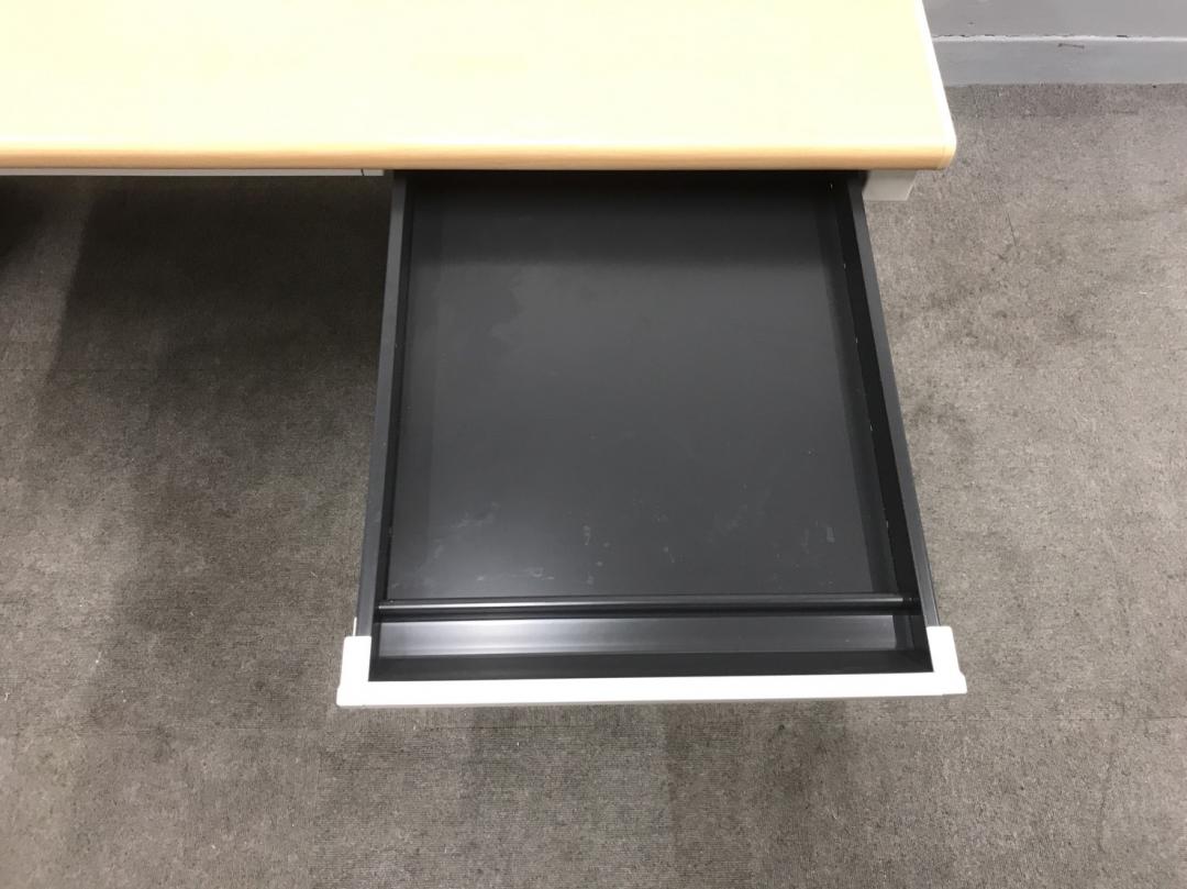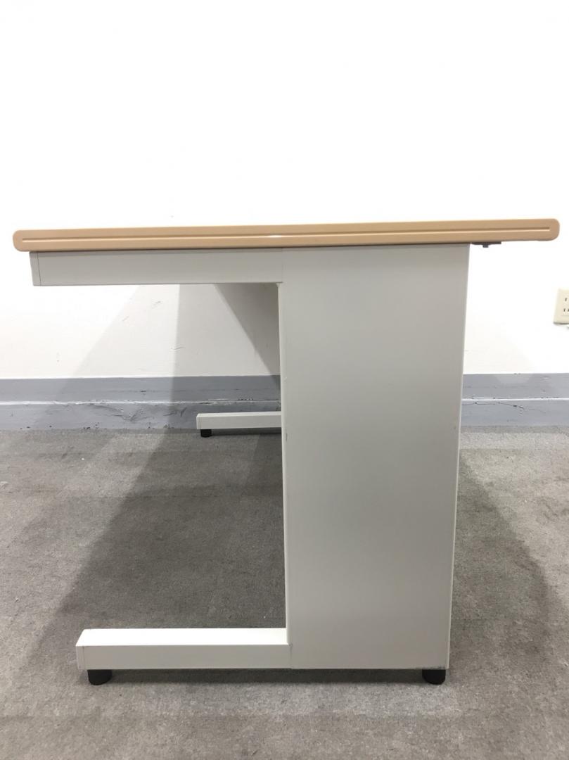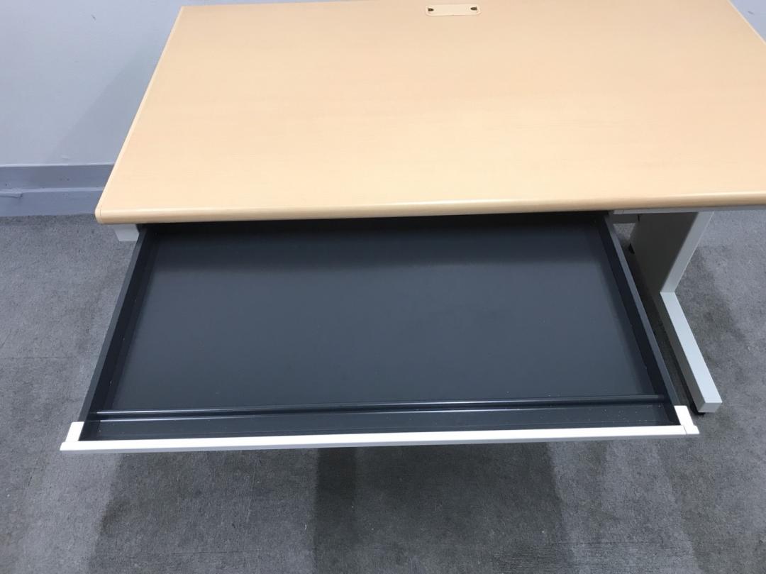 【ベーシックな使いやすさ・ローコストの引き出し付きデスク!】■プラス (PLUS) 製 フラットラインシリーズ 平デスク W1200mm 引き出し付(日焼け有) ■本体:ホワイト 天板:木目ナチュラル(メープル調) 【弊社使用欄:A01040783/A01035962】