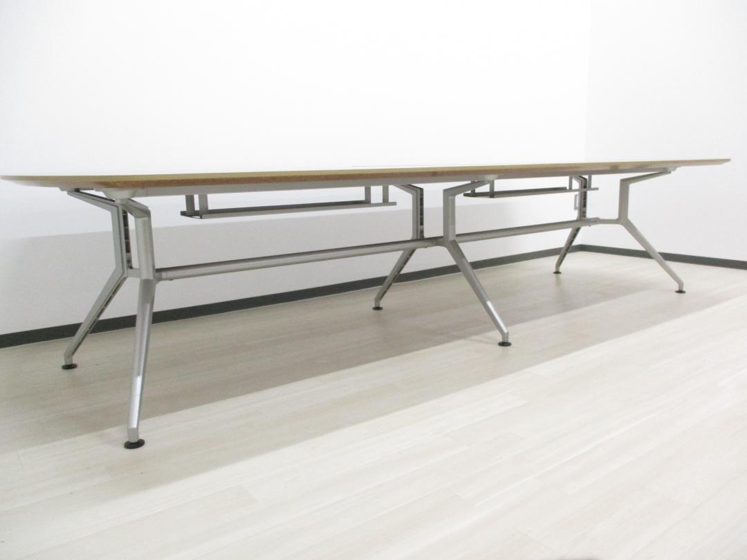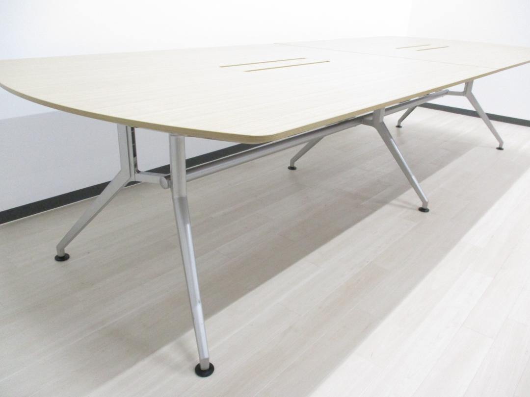 【会議室だけでなく休憩室でも!6~8名様対応・大型テーブル】■イトーキ(ITOKI) DDDシリーズ ミーティングテーブル 会議テーブル 幅2400×奥行900mm ■木目ナチュラル天板 脚シルバー色 オフィスバスターズ東大阪店