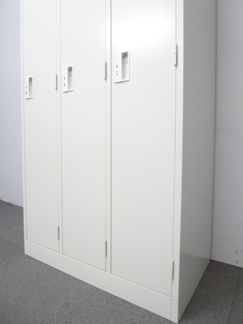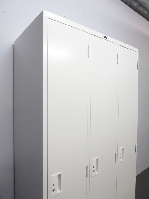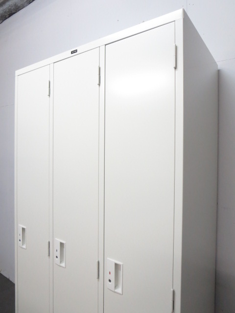 【美しいホワイトカラー!】■3人用ロッカー ■ハンガーパイプ・網棚・ミラー付【お取り寄せ可能!台数揃います!】- 川崎店