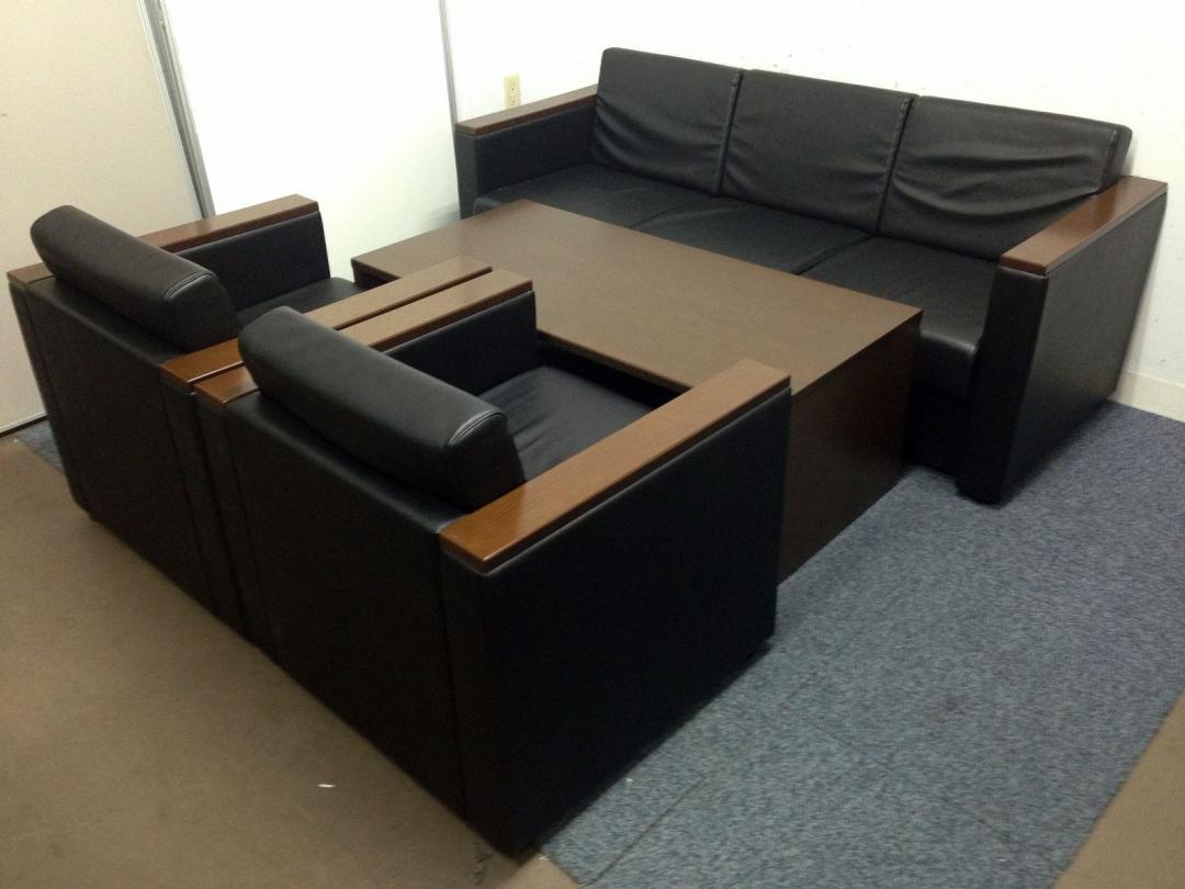 【1点限り】オカムラ S-23F 定番の応接セット入荷しました!! レザー仕様・ブラック色- 名古屋千種店