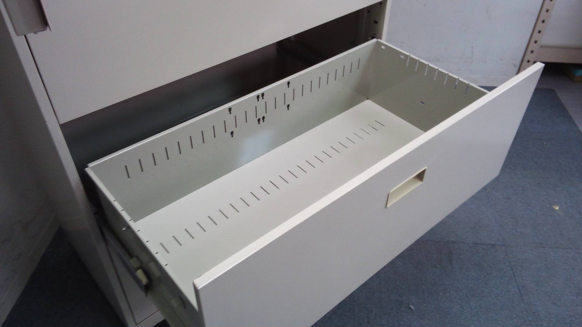 - 一部不具合ありそ引出の開閉不可、施錠不可、棚板無しといったの書庫の本来の効用を果たすための機能以外の一部が使用不可(例、扉、引出の開閉がしづらいなどがある。 )