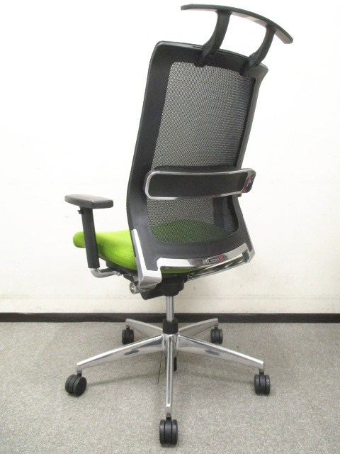 状態良好!【エアランバーサポートってご存知ですか?】エアフォートチェア|可動肘|エアランバーサポート|ブラック×グリーン・コートハンガー付き【hi_class】【中央区】【日本橋】【専門会社によるクリーニング実施品】オシャレ- 日本橋店